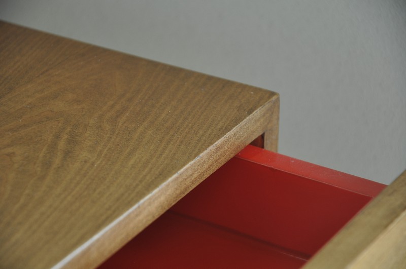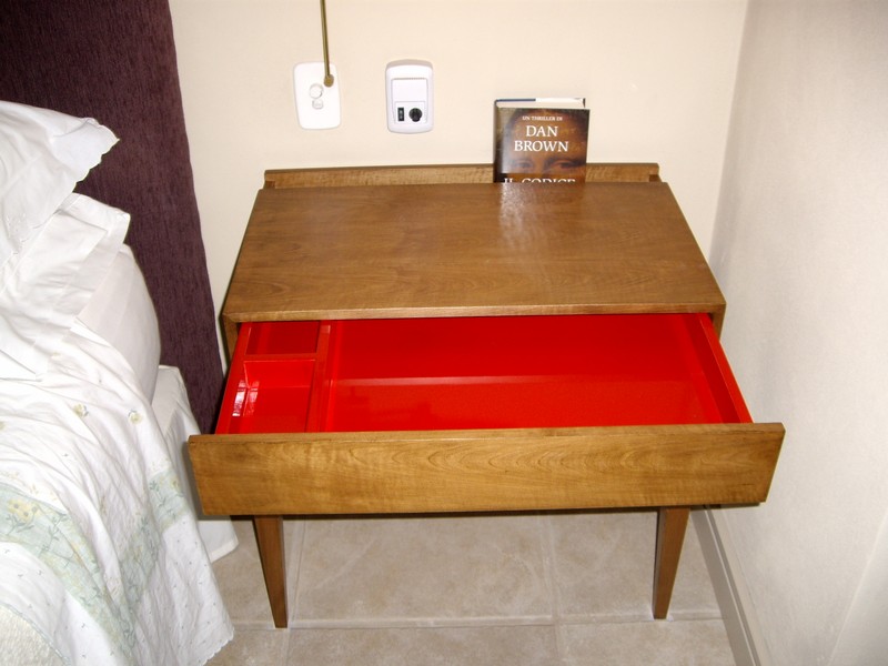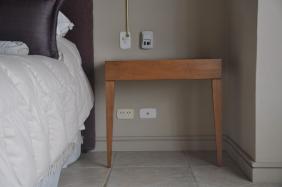 mesita de luz con dos patas, amurada a la pared